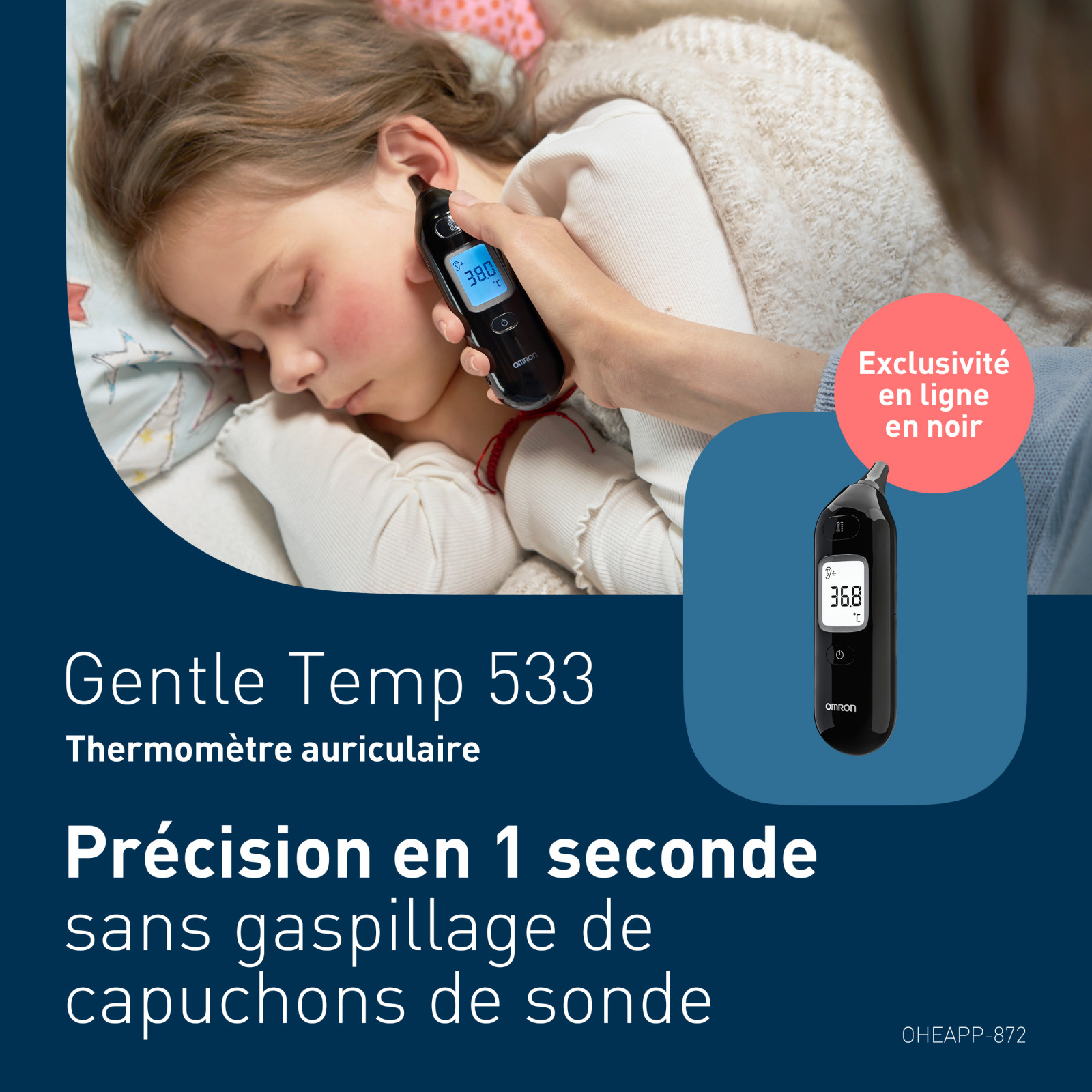 Gentle Temp 533 combine des mesures de température de haute précision et à grande vitesse en seulement une seconde. Précis, rapide, silencieux, durable et économique pour les familles modernes. Facile à nettoyer en un clin d'œil et à réutiliser avec facilité, aucune pièce jetable n'est nécessaire, hygiénique de par sa conception, avec un essuyage rapide, il est prêt à être utilisé à nouveau. Il n'y a pas besoin de couvercles de sonde (moins d'utilisation de plastique et pas de coûts supplémentaires). Il peut mesurer la température dans le silence le plus complet, le mode d'arrêt de la sonnerie assure une utilisation silencieuse et discrète à tout moment. Ce thermomètre garde en mémoire 30 lectures grâce à la fonction de mémoire intégrée - parfait pour suivre les tendances au fil du temps.