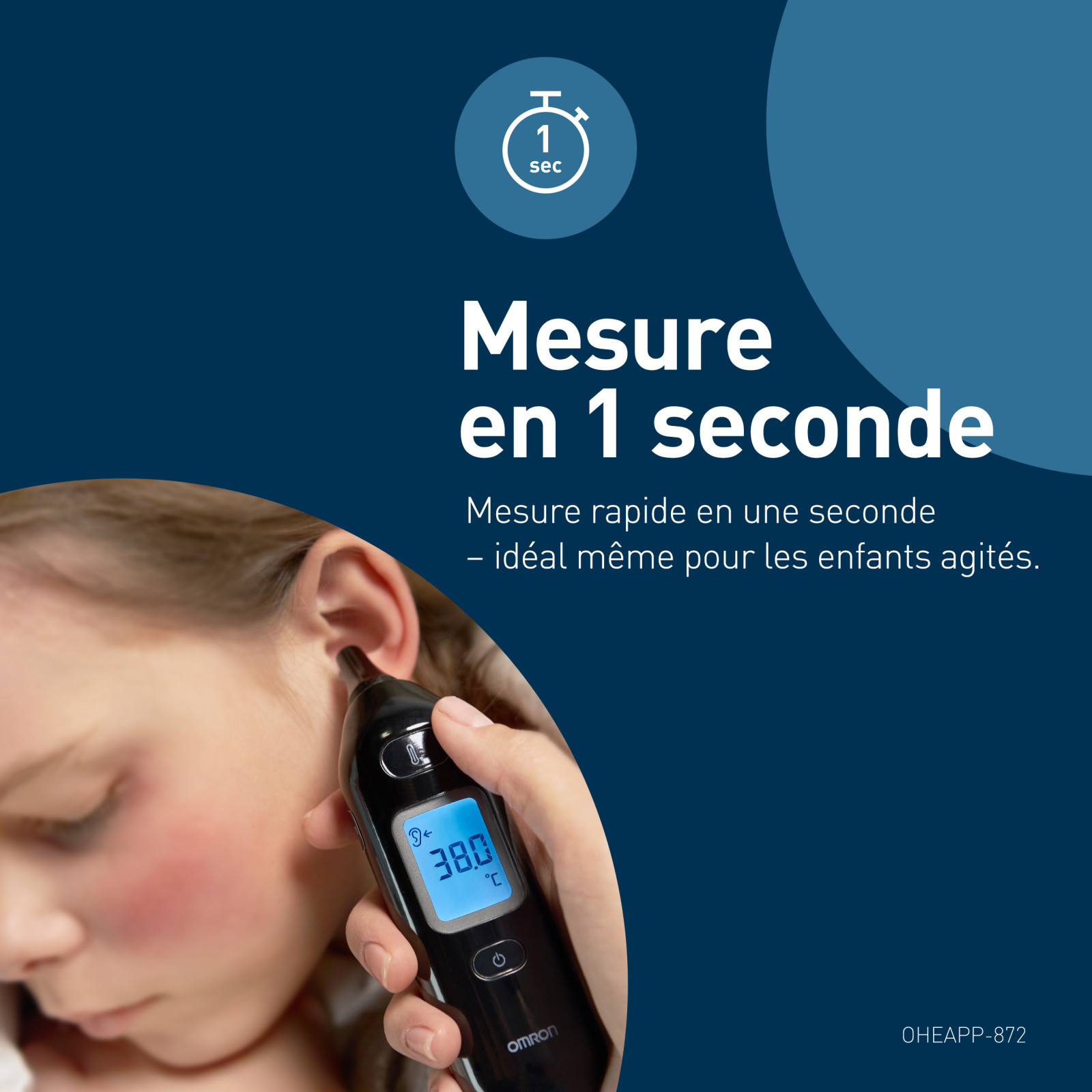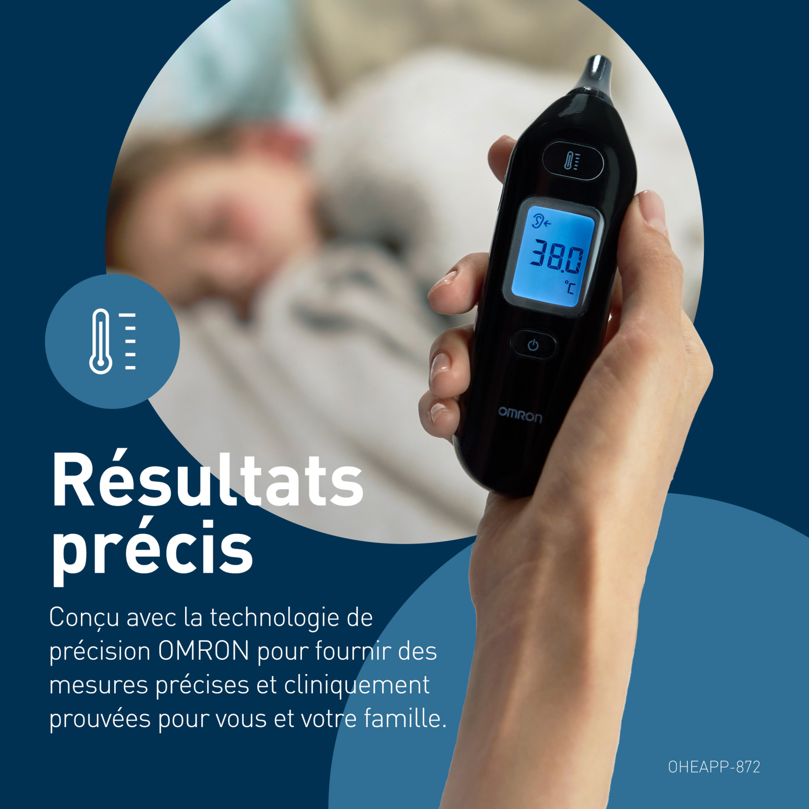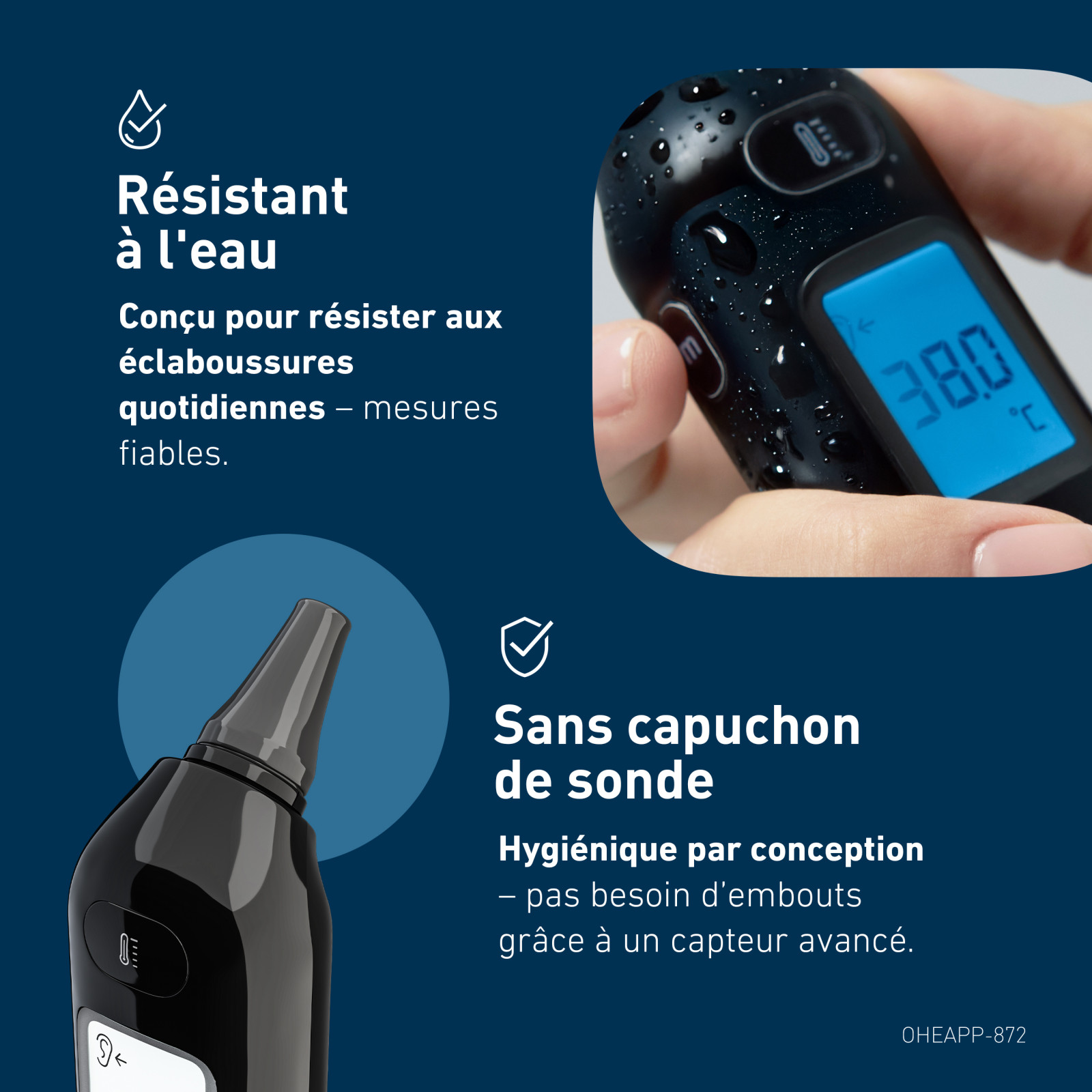 Thermomètre intra-auriculaire perfectionné conçu pour mesurer la température avec précision.