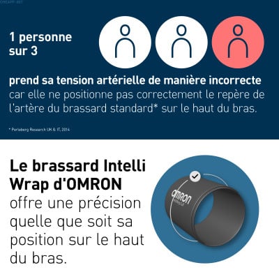 Il est fourni avec un brassard Intelli Wrap (22–42 cm), qui garantit des résultats précis quelle que soit sa position autour du bras. Cela permet d’éliminer les erreurs courantes de positionnement du brassard, ce qui le rend particulièrement adapté aux utilisateurs débutants.